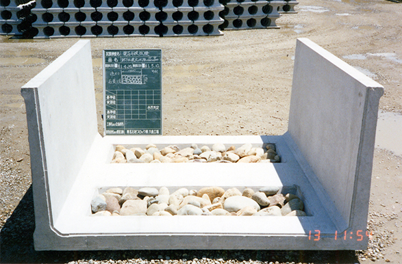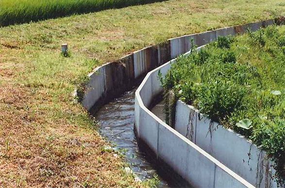 - 小動物の保護を目的とした生態系用・排水路水路内へ落下した小動物の脱出を助け、水飲み等の昇降に配慮した生態系水路です。