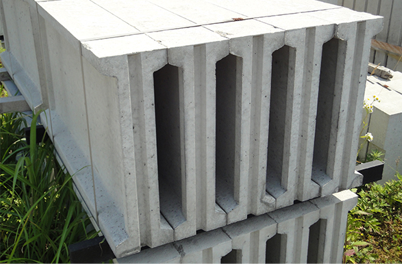 - 農業用排水における幹線・支線排水路に使用される「DF:鉄筋コンクリート排水フリューム」の圃場進入路用に蓋が掛けして用います。