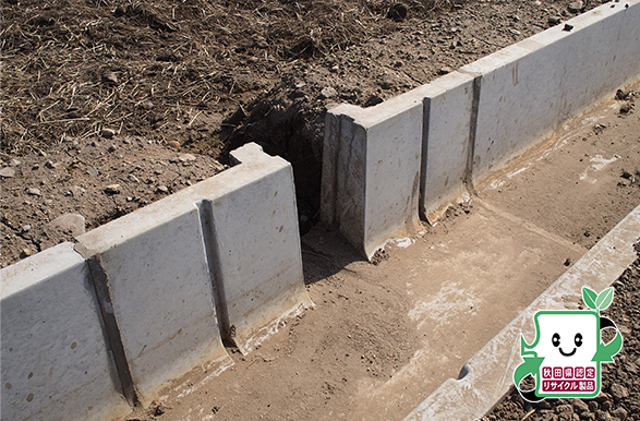 - 秋田県農業農村整備事業における「農道横断用」の可変側溝(KKC)でフリュームに接続されます。
