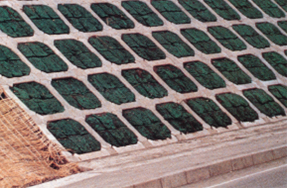 法面表層部の保護(浸食・風化・表層崩壊防止)を目的とした小規模な緩勾配の法面保護工に用いられます。