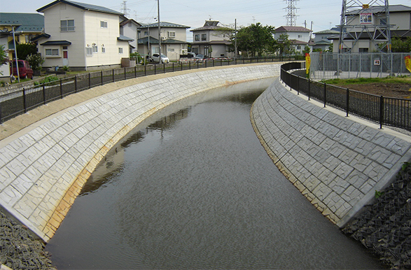 意匠模様は「美しい山河を守る災害復旧基本方針」の河川護岸の具体的留意事項に配慮したものです。